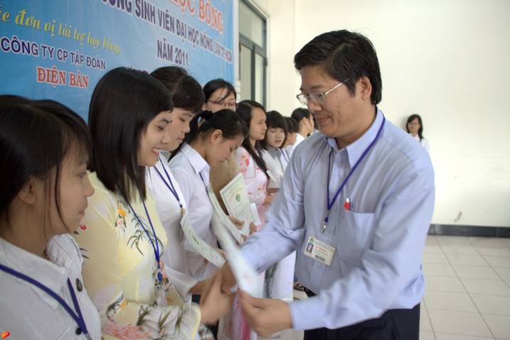 Th.S Trần Đình Lý trao học bổng cho các sinh viên