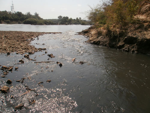 Cống xả thải của Khu công nghiệp Tâm Thắng xả nước đục ngầu ra sông Sêrêpốk (Ảnh chụp sáng 28-1).