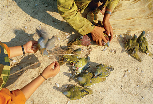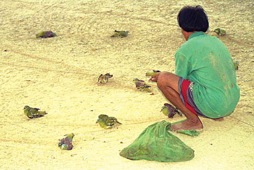 | Lợi dụng các đặc điểm trên của các loài cu xanh, các tay đánh bẫy rừng chuyên nghiệp đặt lưới và vài con cu mồi nơi các bãi đất trống mà cu xanh thường đến ăn vào sáng sớm hoặc chiều tối. Mỗi lần sập bẫy coi như một đàn cu xanh bị bắt gọn.