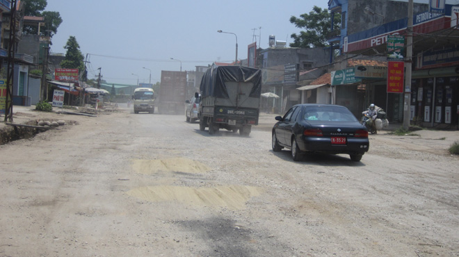 (20:37:33 PM 08/08/2012)Đây là tuyến đường có mật độ giao thông cao, mỗi ngày hàng trăm xe tải, container chạy qua khiến mặt đường bị băm nát, xuất hiện nhiều ổ voi, ổ gà chằng chịt.