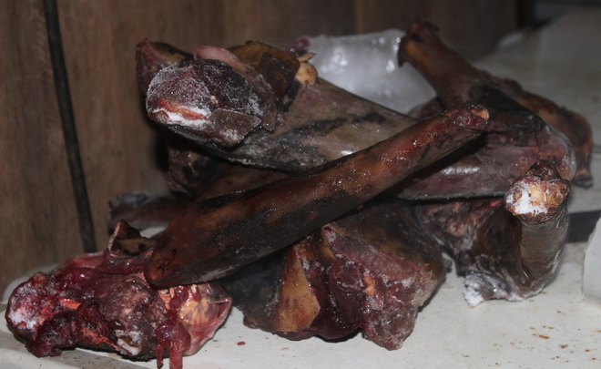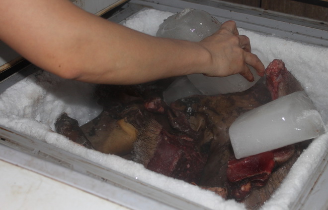 Tại đây có đủ các loại thú rừng bị xẻ thịt như khỉ, chồn, sơn dương, heo rừng... Xẻ thịt xong, bà Tuyết cho vào hai tủ lạnh để cất bán cho các quán hàng lân cận và phục vụ ăn nhậu ngay trong ngôi nhà này.