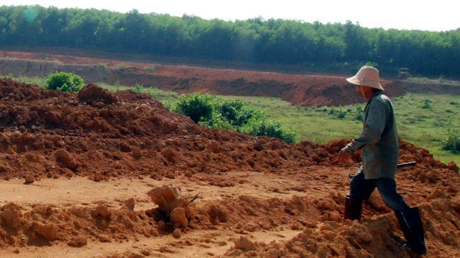 Không chỉ rên xiết vì ô nhiễm, nhiều người dân còn tiếc rẻ đất đai bỏ không, trong lúc dân bị di dời không đất sản xuất, không có việc làm. Ông Trần Đình Khôi, một trong 30 hộ dân nhường đất, phàn nàn: “Dân đã bàn giao đất cho công ty từ năm 2009 nhưng nhà máy vẫn chưa thấy. Chừng ấy thời gian mà để dân canh tác thì cải thiện cuộc sống rất nhiều”. Hộ bà Lê Thị Liên trước đây trồng hơn 4.500m2 keo nguyên liệu được một năm tuổi, khi có dự án đành phải phá bỏ với giá đền bù 2.000 đồng/cây. “Để đến bây giờ, keo 4 năm tuổi cho thu hoạch, giá 10.000-15.000 đồng/cây, dân có thu nhập chứ đất bỏ không, tiếc quá” - bà Liên kể.