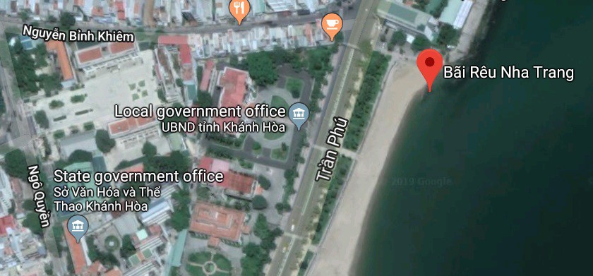 Bãi rêu (dấu đỏ trên bản đồ) nằm gần khu vực ngã ba Nguyễn Bỉnh Khiêm - Trần Phú ở Nha Trang - Ảnh chụp màn hình