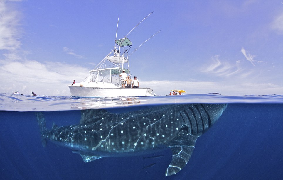 Các bức ảnh khác cho thấy các con cá mập voi bơi rất thân thiện bên cạnh nhóm các nhà hoạt động bảo tồn động vật đến từ tập đoàn Virgin Group của tỷ phú người Anh Richard Branson và tổ chức bảo tồn động vật hoang dã WildAid.