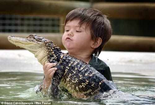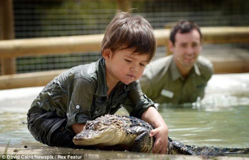 Cậu bé 3 tuổi chơi đùa với cá sấu