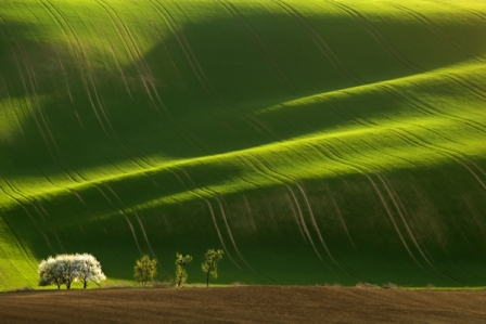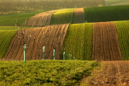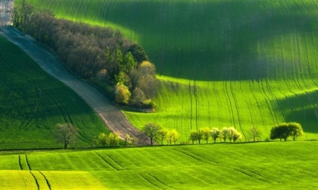 Trải dài trên cao nguyên Moravia là những cánh đồng xinh đẹp màu xanh dương dịu mát. Màu xanh lan tỏa khắp các triền đồi mang lại cảm giác như thể cả bầu trời được đặt xuống mặt đất.