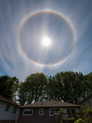 Vầng hào quang xung quanh mặt trời trong bức ảnh được chụp tại Vancouver, Canada. Ảnh: National Geographic.
