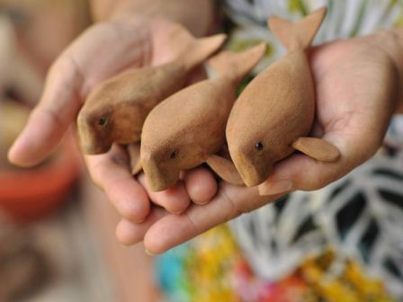 Hình các con lợn biển được trạm trổ bằng gỗ - một động vật có vú địa phương ở biển Andaman.