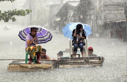 | Thuyền bè tự chế ở Malabon (Philippines) trong những ngày mưa lớn vừa qua. |