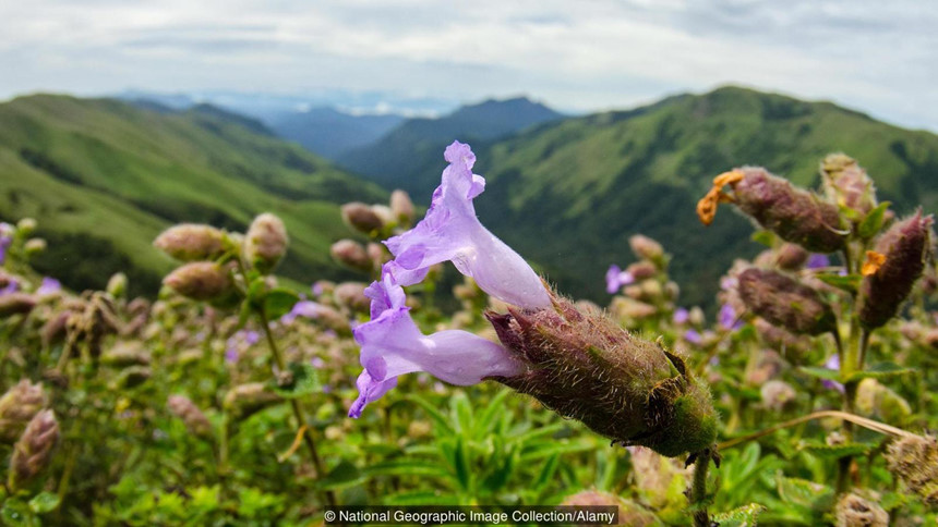 Cây Neelakurinji, hay còn gọi là Kurinji, thuộc chi Chùy hoa. Chi thực vật này gồm khoảng 350 giống cây có hoa, trong đó 59 loài sinh trưởng khắp bán đảo Ấn Độ. Mỗi loài lại có một thời điểm nở hoa khác nhau. Ảnh: Alamy.