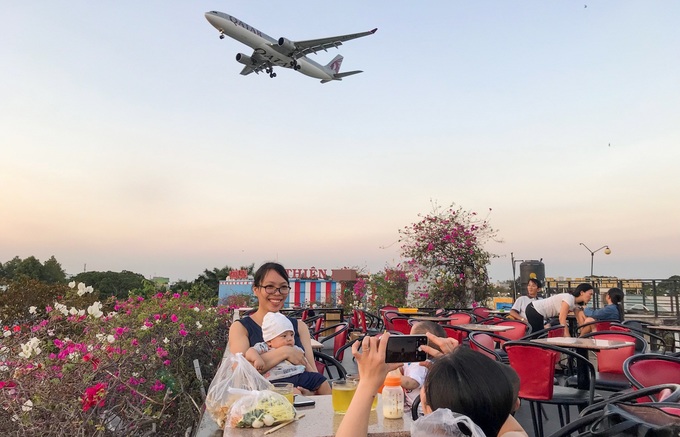 Uống cà phê ngắm máy bay lướt ngang đầu ở Sài Gòn