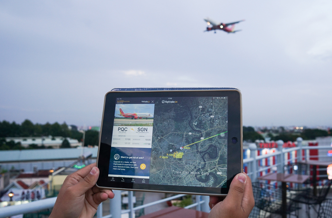 Để việc ngắm, chụp ảnh máy bay thuận tiện hơn, nhiều khách đến quán sử dụng ứng dụng xem lộ trình bay. "Mỗi chuyến cất hạ cánh, hành trình, loại máy bay và bản đồ hướng bay đều được cập nhật. Nhờ vậy, chúng tôi dễ dàng theo dõi, kịp chuẩn bị máy móc, góc chụp", anh Hùng giải thích.