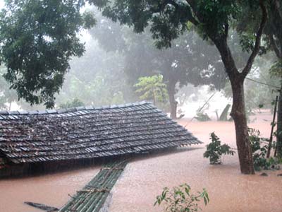 Lũ quét: Trong ảnh, mưa lũ đã làm ngập nhiều nhà dân ở Bảo Thắng (Lào Cai) - Ảnh: Thu Phương