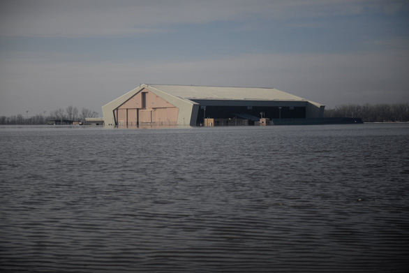 Khu vực nhà chứa máy bay E4-B tại căn cứ Offutt bị ngập trong nước - Ảnh: REUTERS