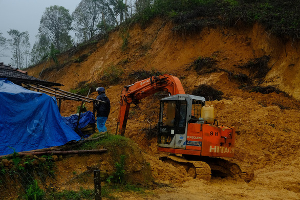 Người dân trong làng kể tối 4-11, đất đá bất ngờ đổ sập phía sau nhà. Trong đêm, chính quyền khẩn trương đưa người dân rời khỏi làng đến ở ghép tại những nhà dân có vị trí an toàn.