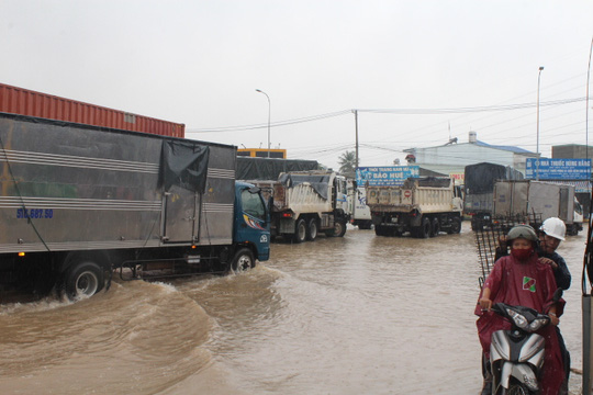 (17:30:57 PM 02/10/2017)Trưa 2-10, trong trận mưa lớn, nhiều khu vực tại TP Biên Hòa, tỉnh Đồng Nai lại ngập nặng. Đặc biệt, khu vòng xoay Võ Nguyên Giáp- Quốc lộ 51- đường Bùi Văn Hòa- Cổng 11 ngập rất nặng, rơi vào tình trạng rối loạn, tê liệt.