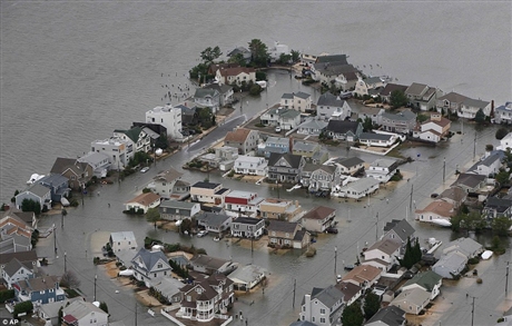 | Khu dân cư ở khu vực vịnh Seaside, New Jersey chìm trong biển nước . |