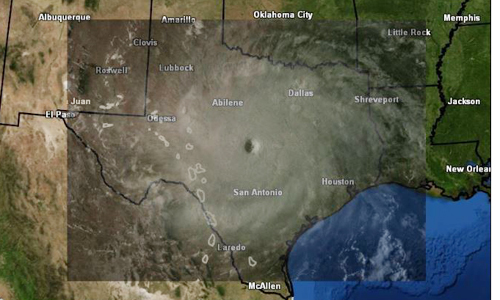 Ảnh siêu bão Irma được chồng lên bang Texas, Mỹ để so sánh kích thước. Ảnh chụp màn hình: Twitter.