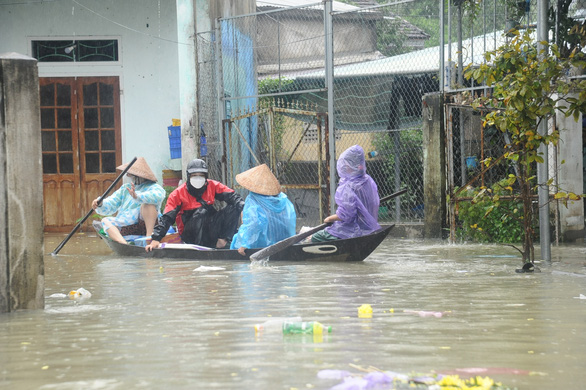 Mưa lớn, hồ xả lũ, một số khu vực tại Tam Kỳ ngập nặng, dân dùng thuyền đi lại