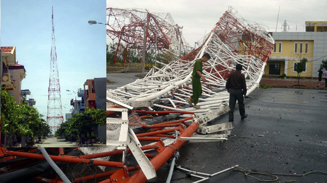 (08:11:25 AM 31/10/2012)Tháp ăngten Đài PTTH Nam Định trước và sau khi bị gió bão giật đổ - Ảnh: Namdinhonline/Minh Quang