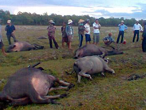 Ông Nguyễn Đại Vui, Chủ tịch UBND huyện Phong Điền (Thừa Thiên - Huế) cho biết, trong hai ngày 28-29/5, địa bàn có mưa dông kèm theo sấm sét. 15 con trâu của 8 hộ dân bị sét đánh chết.
