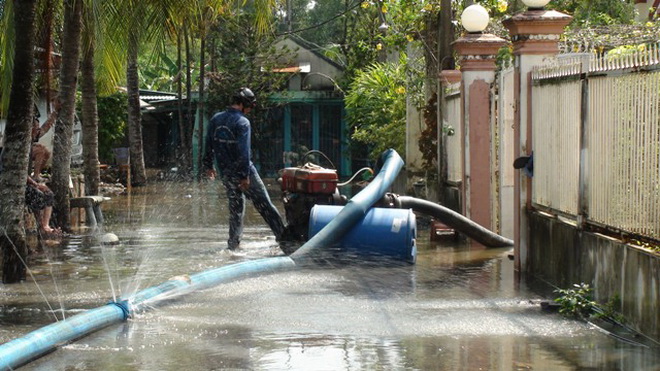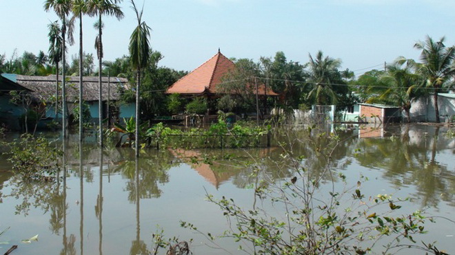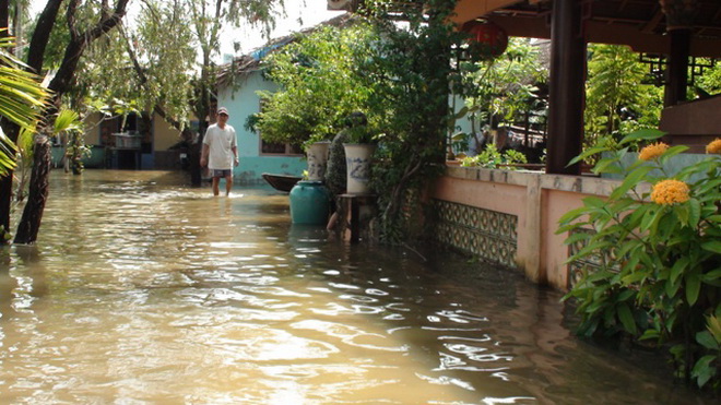 Tuy nhiên, khoảng 5g sáng 18-10, nhiều hộ dân sống ở đây bỗng nghe tiếng đổ ào ào từ ngoài sông, chạy ra ngoài mới biết bờ bao quanh rạch bị vỡ, nước chảy mạnh xô ngã bức tường chắn quanh nhà rồi tràn ồ ạt vào khu dân cư. Chỉ 30 phút sau cả khu vực này chìm trong biển nước. Ông Khánh cho biết: “Ngoài đồ đạc như máy móc, tivi, tủ lạnh… bị hư hỏng, cá trong ao trôi ra rạch làm thiệt hại khoảng 10 triệu đồng".