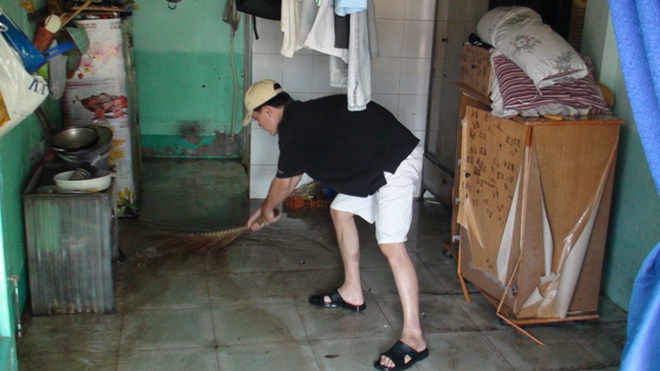 | Đến khoảng 11g cùng ngày nước trong nhà đã rút, nhiều hộ dân dọn dẹp nhà cửa |