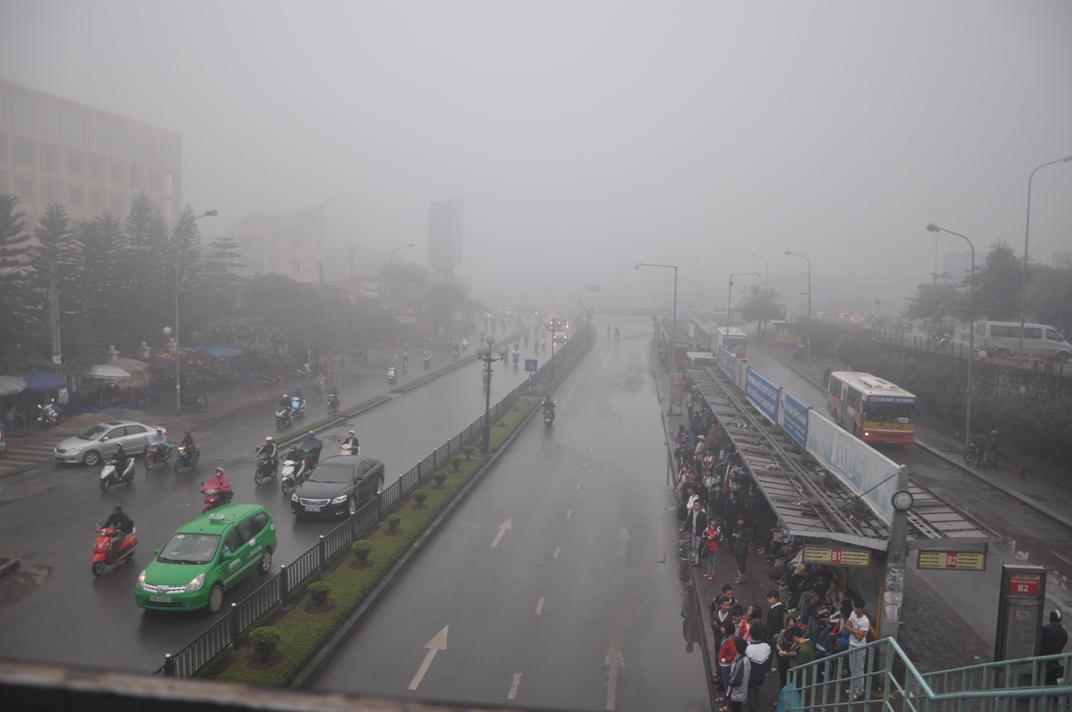 Tình trạng sương mù bao phủ quanh thành phố Hà Nội vẫn tiếp diễn.