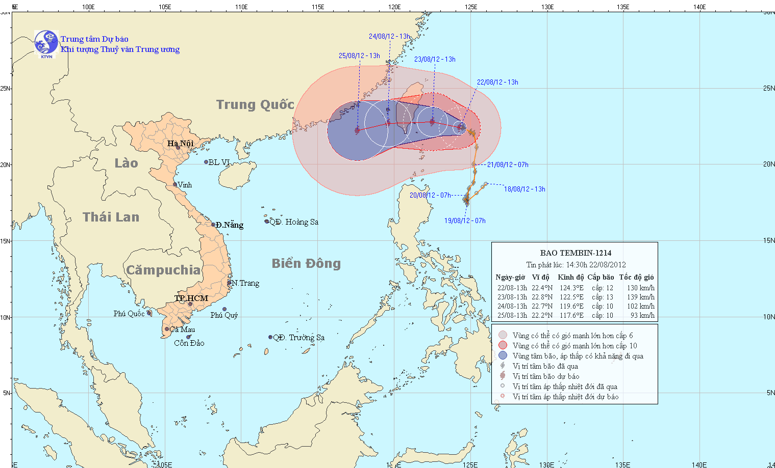 (09:13:25 AM 26/08/2012)(Tin Môi Trường) - Theo Trung tâm Dự báo Khí tượng Thủy văn Trung ương, hồi 4 giờ ngày 26/8, vị trí tâm bão số 6 ở vào khoảng 21,1 độ Vĩ Bắc; 116,7 độ Kinh Đông, cách quần đảo Hoàng Sa khoảng 680 km về phía Đông Bắc. Sức gió mạnh nhất ở vùng gần tâm bão mạnh cấp 12 ( từ 118 đến 133 km/giờ), giật cấp 13, cấp 14.