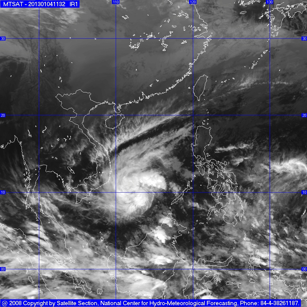 Ảnh mây vệ tinh của cơn bão chụp lúc 21 g30 ngày 4/1/2013