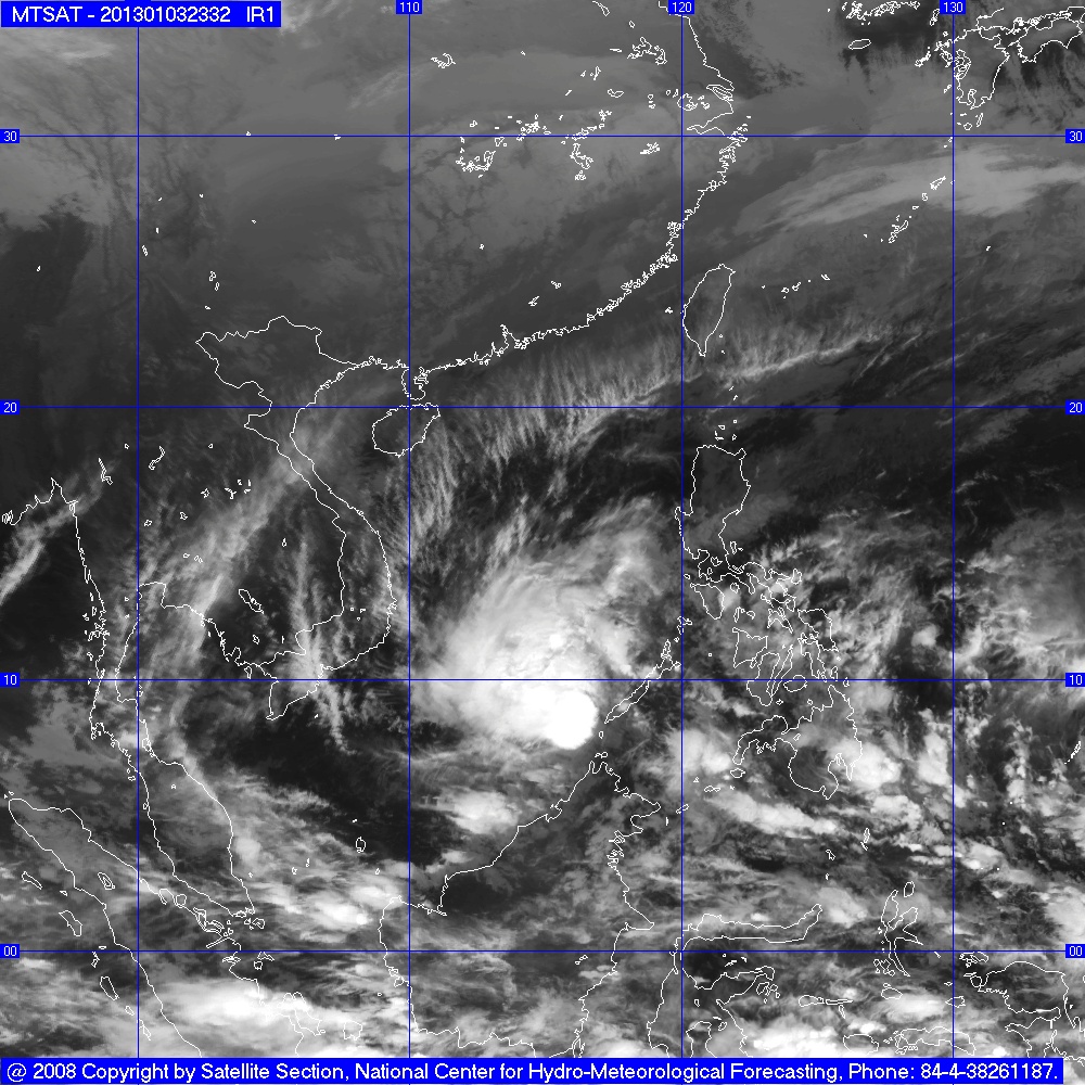 Ảnh mây vệ tinh chụp lúc 17g30 ngày 4/1/2013