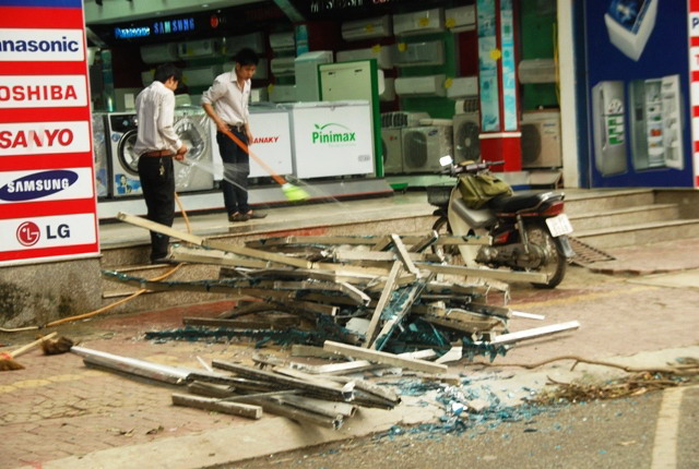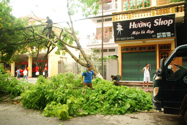 Đặc biệt, tại TP Lào Cai (Lào Cai) xảy ra gió lốc mạnh trong cơn giông gây thiệt hại về nhà cửa, cây xanh, hoa màu các loại, có 7 ngôi nhà bị tốc mái hư hỏng nặng. Trụ sở làm việc của Sở Nông nghiệp & PT-NT tỉnh Lào Cai tốc mái, vỡ trên 200 viên ngói đỏ. Gió mạnh gây sập đổ nhà để xe làm bằng khung sắt, lợp mái tôn, diện tích 200m2. Khoảng 25 cây xanh trên đường phố bị gió lốc làm gãy đổ nghiêng ngả. Nhiều cây chuối trồng trong vườn, ngô đông hè của các hộ gia đình ở xã Vạn Hòa (TP Lào Cai) bị gió xoáy vật đổ hàng loạt.