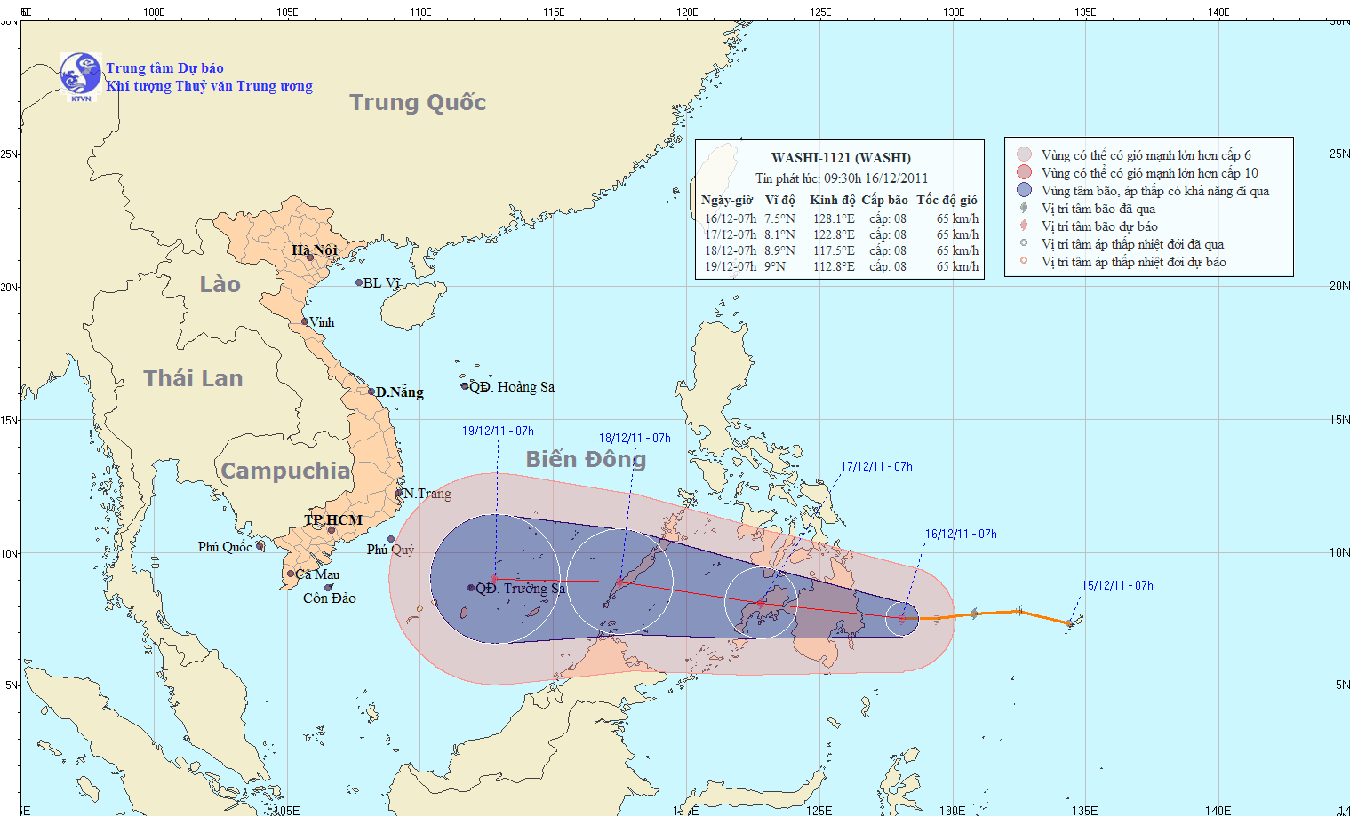![]() Dự báo đường đi của bão (Trung tâm Dự báo KTTVTW)