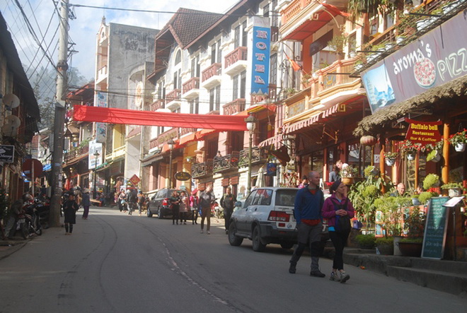 Mặc dù rét nhưng thị trấn Sa Pa vẫn đông khách du lịch Tây đến đây hưởng không khí lạnh và tham gia các tour du lịch leo núi hoặc đi bộ, điền dã khám phá bản làng đồng bào dân tộc địa phương.