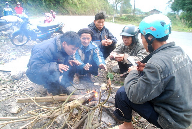 | Đốt lửa sưởi ấm trên đường lên Sa Pa - Ảnh: Hồng Thảo |