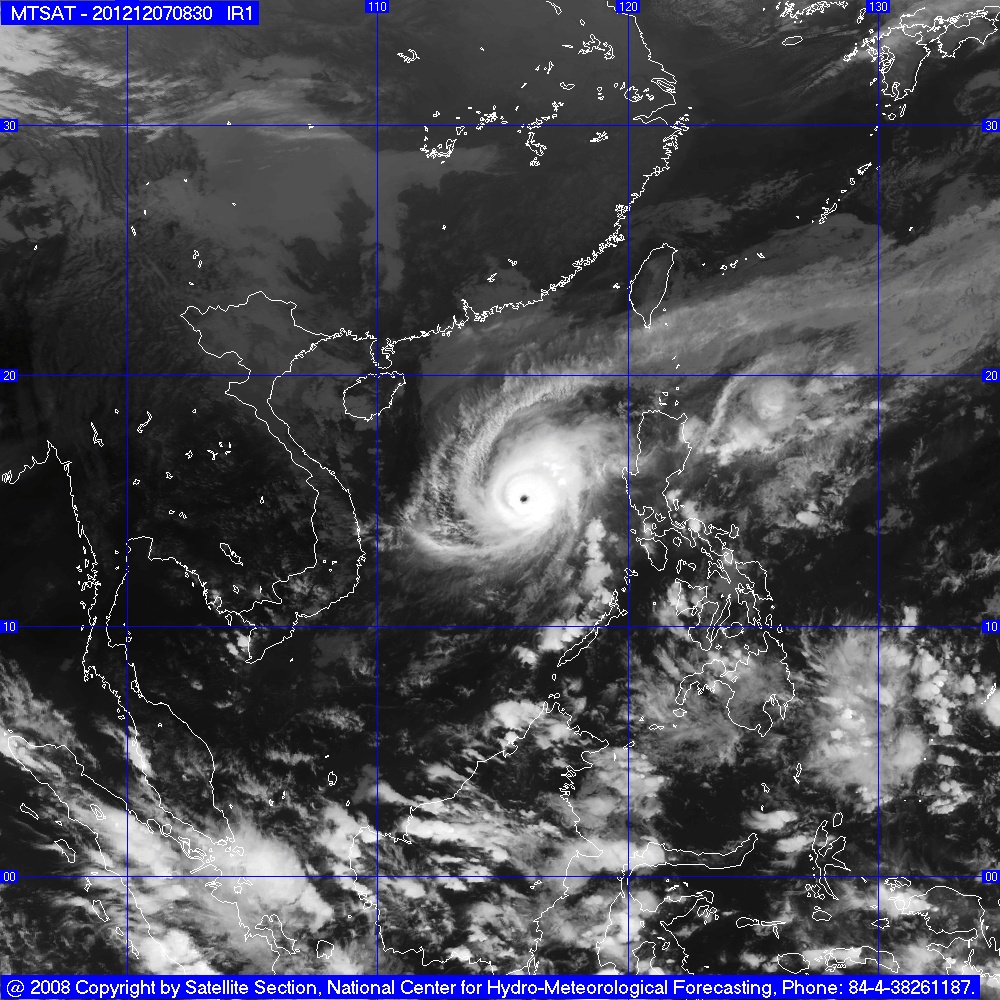 Ảnh mây vệ tinh chụp vị trí cơn bão lúc 21 giờ 30 phút ngày 7/12 - Ảnh : TTDBKTTVTU