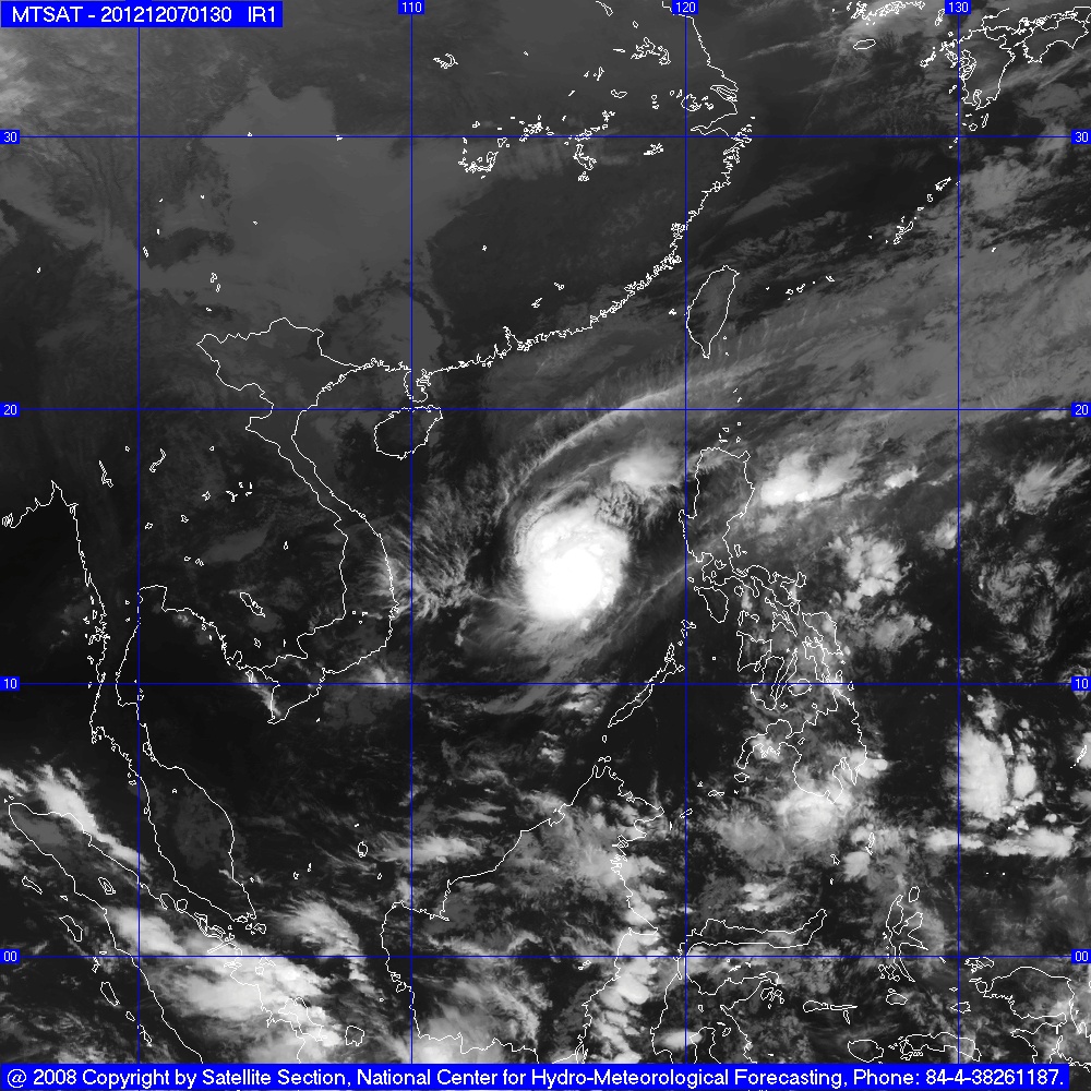 Ảnh mây vệ tinh chụp vị trí cơn bão lúc 14 giờ 30 phút ngày 7/12 - Ảnh : TTDBKTTVTU