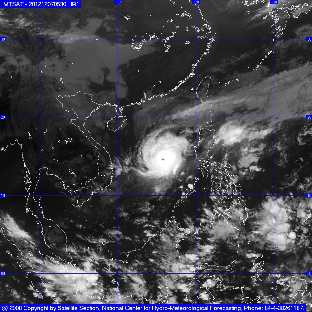 Ảnh mây vệ tinh chụp vị trí cơn bão lúc 17 giờ 30 phút ngày 7/12 - Ảnh : TTDBKTTVTU