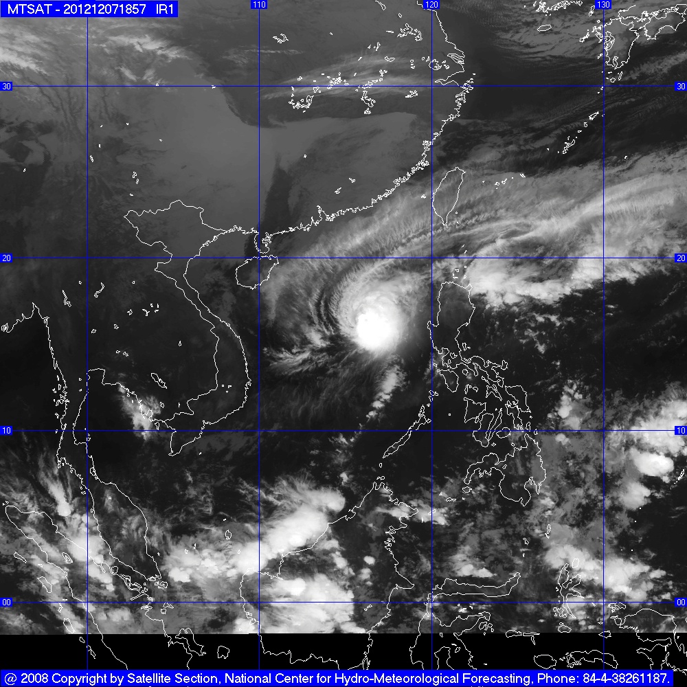 Ảnh mây vệ tinh chụp vị trí cơn bão lúc 09h30 phút ngày 8/12 - Ảnh : TTDBKTTVTU