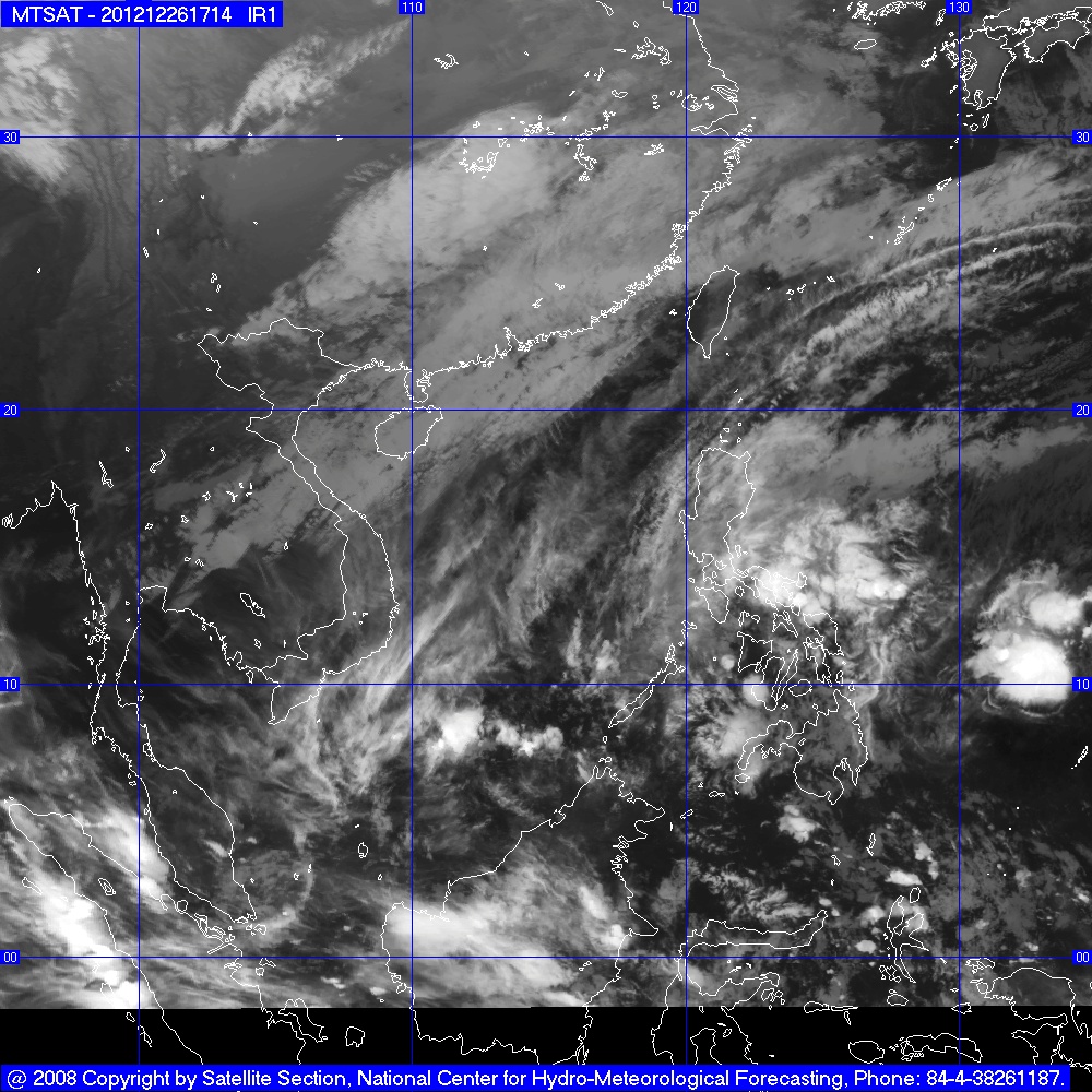 Ảnh chụp mây vệ tinh vị trí cơn bão lúc 3 giờ 30 ngày 27/12