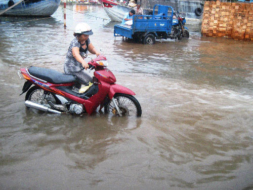 Các tuyến đường như Lương Định Của (quận 2), Ngô Tất Tố và Bình Quới (quận Bình Thạnh)… chìm sâu trong nước, xe chết máy hàng loạt. Đặc biệt, đường Bến Phú Định (phường 16, quận 8) có đoạn đang thi công buộc người dân phải luồn lách qua các đống đá bên đường để lưu thông; nhiều học sinh đi học về bị té ngã.