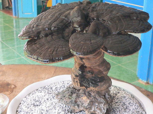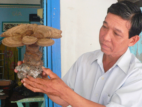 Ông Trương Văn Liêu (chồng bà Lam), cho biết khi phát hiện nấm lạ này, vợ ông mang về nhà rửa sạch và dùng dây treo lên trần nhà cho khô. Càng khô thì cây nấm càng đẹp vì toàn bộ thân và tán của nó xuất hiện những hoa vân như vân gỗ. Sau khi đem cho nhiều người quen xem qua, vợ ông mua cái chậu kiểng rồi trồng nó vào đó để trưng trong tủ kính. Có người còn nói vui đây là cây nấm đá vì nó rất cứng.