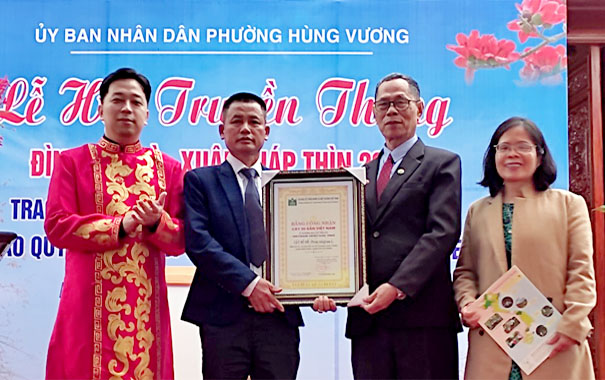 (04:26:08 AM 21/03/2024)(Tin Môi Trường) - Ngày 19/3, chính quyền cùng nhân dân phường Hùng Vương, quận Hồng Bàng, thành phố Hải Phòng long trọng tổ chức Lễ đón Bằng công nhận cây bồ đề cổ thụ tại đình An Trì là Cây Di sản Việt Nam.