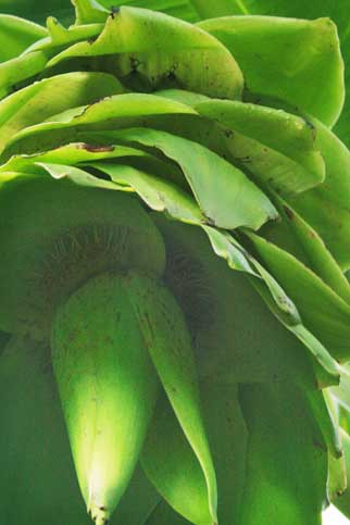 Những chiếc mo hình lá bắc có tác dụng như cánh cửa ngăn chặn không cho các loài chim, thú nhỏ đụng chạm vào các quả chuối khi chúng còn xanh (ảnh 3). Thế nhưng khi chuối già chín tới, toả mùi thơm phức, những chiếc mo này già đi, teo lại như cánh cửa được mở ra mời gọi các loài chim, thú nhỏ vào ăn chuối. Sau đó các thực khách này sẽ vô tình gieo hạt đi khắp nơi, giúp chuối cô đơn có cơ hội mọc thành cây mới để duy trì nòi giống... cô đơn.