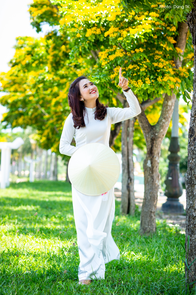Thiếu nữ tạo dáng bên hoa sưa