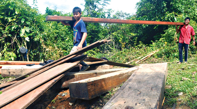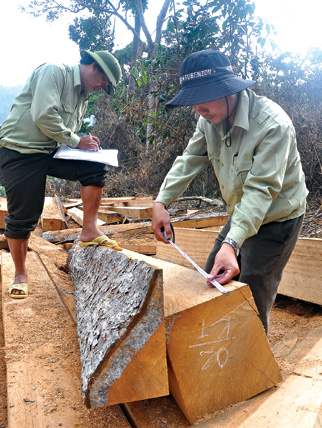 Những thanh niên to khoẻ hàng ngày mang cưa vào xẻ gỗ trong rừng phòng hộ, sau đó chuyển ra bìa rừng để bán kiếm tiền mưu sinh hàng ngày.
