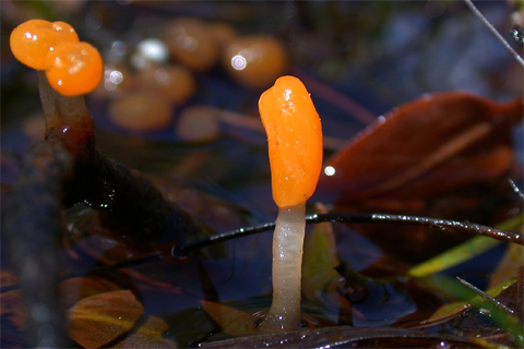 | Nước màu đỏ rỉ ra từ nấm Hydnellum peckii, loài nấm mọc trong các rừng thông. |