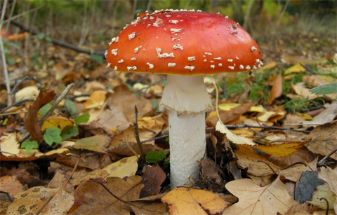 | Amanita muscaria là loài nấm mọc trong những rừng cây bulo. Dù chứa chất độc, chúng thường xuyên xuất hiện trong các bưu thiếp Giáng sinh và sách dành cho thiếu nhi. |