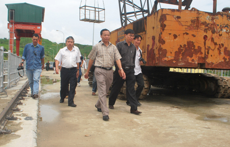 | Ông Nguyễn Xuân Diệu (đi đầu)- Phó Tổng cục trưởng Tổng cục Thủy lợi, Ủy viên Thường trực Ban chỉ đạo PCLB T.Ư thị sát đập Sông Tranh 2. |