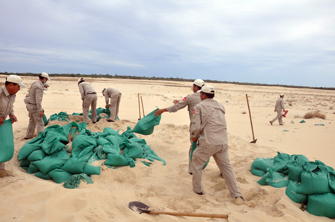 Trên trảng cát mênh mông rộng hàng ngàn hecta của thôn Diên Khánh thuộc xã Hải Dương, từ nhiều năm nay đây là “điểm hẹn cuối tuần” của nhiều đơn vị thuộc các dự án quốc tế về rà phá bom mìn nhân đạo như SODI, RENEW, Peace Tree, C.P.I... đang hoạt động trên địa bàn tỉnh Quảng Trị.